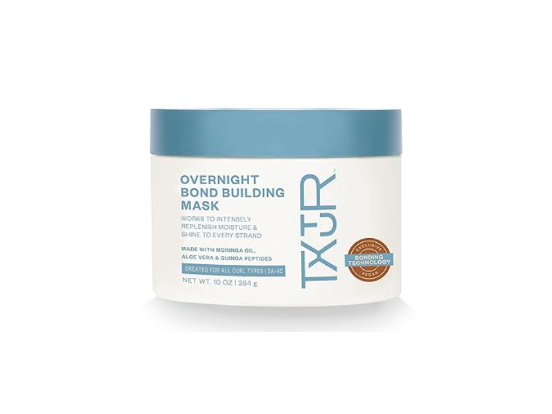 The TXTUR Overnight Bond Building Mask is an intensive, deep conditioning hair treatment designed for all curl patterns in need of repair from damage.