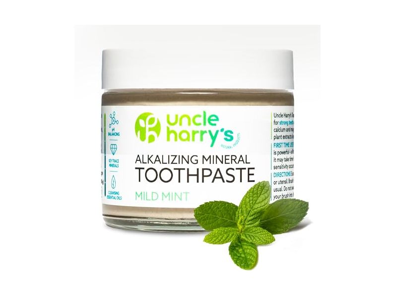 An all natural toothpaste that eliminates bad breath with a MILD blend of spearmint, peppermint, and wintergreen for those sensitive to our original scent. It refreshes your mouth with mineral clays, sea salt, and pure plant essences all day long. Uncle Harry's Natural Tooth Paste Products come packaged in an Earth-friendly, zero waste glass jar that’s been labeled by hand.
