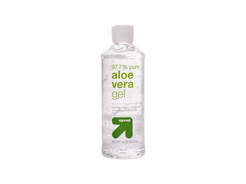 Aloe Vera Gel from up & up™ This soothing aloe gel provides cooling relief to help ease the pain and discomfort of sunburn. Comprising 97.7% pure aloe with no alcohol, this aloe vera gel returns moisture to skin as it soothes, rather than drying it out further.