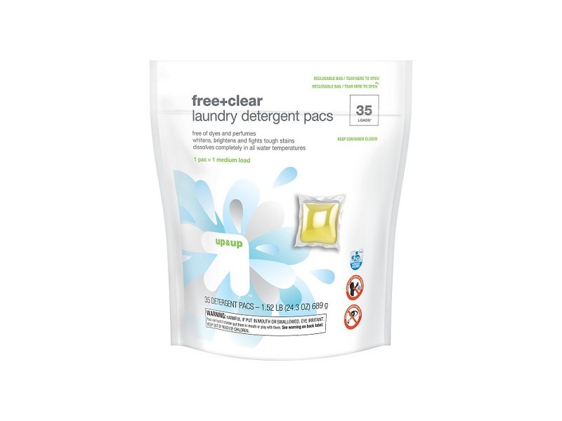Treat your skin right with Free + Clear laundry detergent pacs from up & up. These dye and perfume free detergent capsules are ideal for sensitive skin, offering a complete clean with brightening power and effective stain lifting benefits.